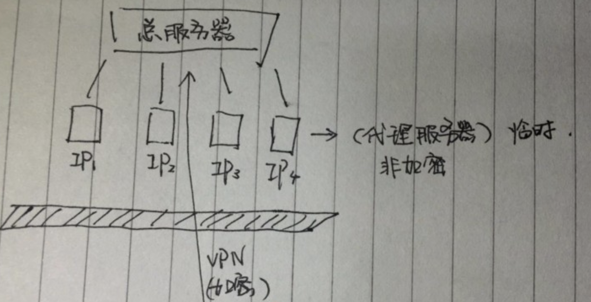 IP1、IP2、IP3、IP4 可能都是临时网址指向的临时代理服务器,它们从一个隐蔽的总服务器下载数据,但是用户与这些代理服务器的通讯是非加密方式,通讯内容被监管抓取,或者只要监控这些地址的流量,通过大数据分析,很容易分析出用途,从而被“封禁”——由于这些代理服务器都设在国外,所以这里是指用户的访问数据包直接被丢弃,造成通讯“短路”。而这种代理服务器便宜,常被色情网站派出来充当冲锋陷阵的“小弟”,容易阵亡。