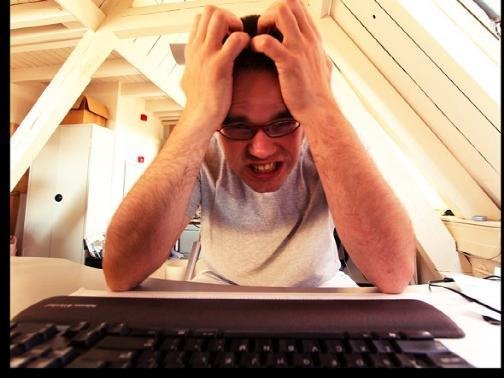 重启你的电脑是消灭所有导致电脑速度变慢后台进程的最好方法。学着习惯每隔一段时间就重启一下电脑,否则你就会像上面图片中的家伙一样沮丧。