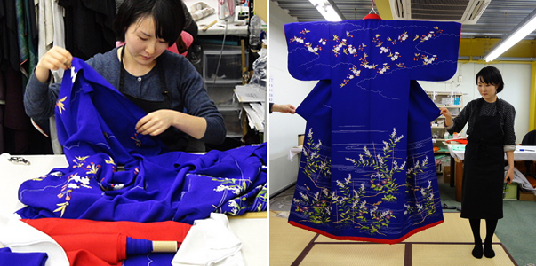 愈是天然纤维织制的布料愈易磨损,时间久了也有褪色的可能,再经丝线绣制后,连同丝线保存更是难上加难。而走过千年之旅的刺绣工艺,作为承载传统文化的宝贵遗产,不应也不能就此消失。刺绣修复应运而生。专事刺绣工艺修复的工房在日本也十分罕有,京都伏见区便有一家 “和光舍”。沿袭京都的传统“京洗”工艺,服务寺院的法衣袈裟的修护与清洁,其中设有刺绣修复的工房。秉承流传万代的理念,为将百年前的传世之作更好的留存给后代,承接从寺社庙院的古物国宝到普通家庭手工绣品的修复工作。其中不乏百年以上稀物,更甚者有修复过三百年前遗存珍品的经历,工房内的职人皆有着经年累月的刺绣经验,可喜的是其中亦有年轻面孔。工艺技法丝毫不逊色于百年前的名工,每日都会有8名的绣工追随百年前的线索,一针一线间复苏历史的针迹。