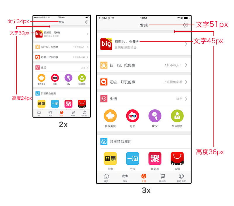 3.为什么开发不是乘以2而是乘以1.5来算尺寸和字号?因为大屏手机就是要显示更多内容而存在的。纯等比放大界面看起来傻大傻大的,实验证明1.5倍是正好的。