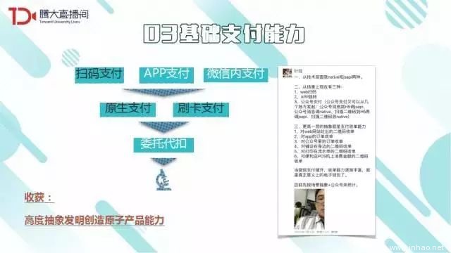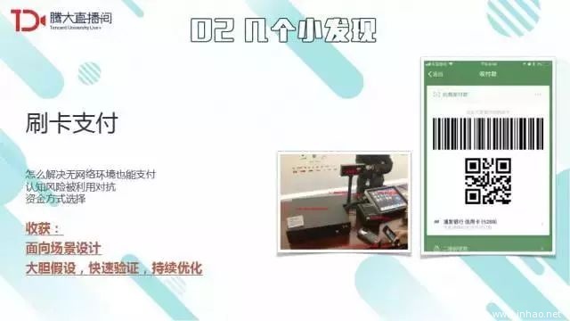 微信支付团队高度抽象了二维码支付,使它能够在网站、出租车结账等场景中使用,使之成为一个“原子产品”。微信支付近期也在关注委托代扣业务,这是一种非常有生命力的支付方式,本质是把自己的ID给服务方,然后委托服务方通过微信扣款。人脸支付和车牌支付都有可能跟委托代扣相关联。我们在一步步基础能力演进上,也大胆假设、小心求证、谨慎推演怎样创造一种又一种的具有突破性的支付能力,让它在我们整个商业环境中发挥更大的效能。